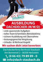 Die Dachdeckerfirma Staubach wurde vor 25 Jahren gegründet und hat Ihren Sitz in Herbstein.